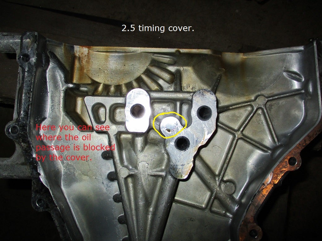 Pic 2: 2.5 timing cover showing area of cover that blocks open port.